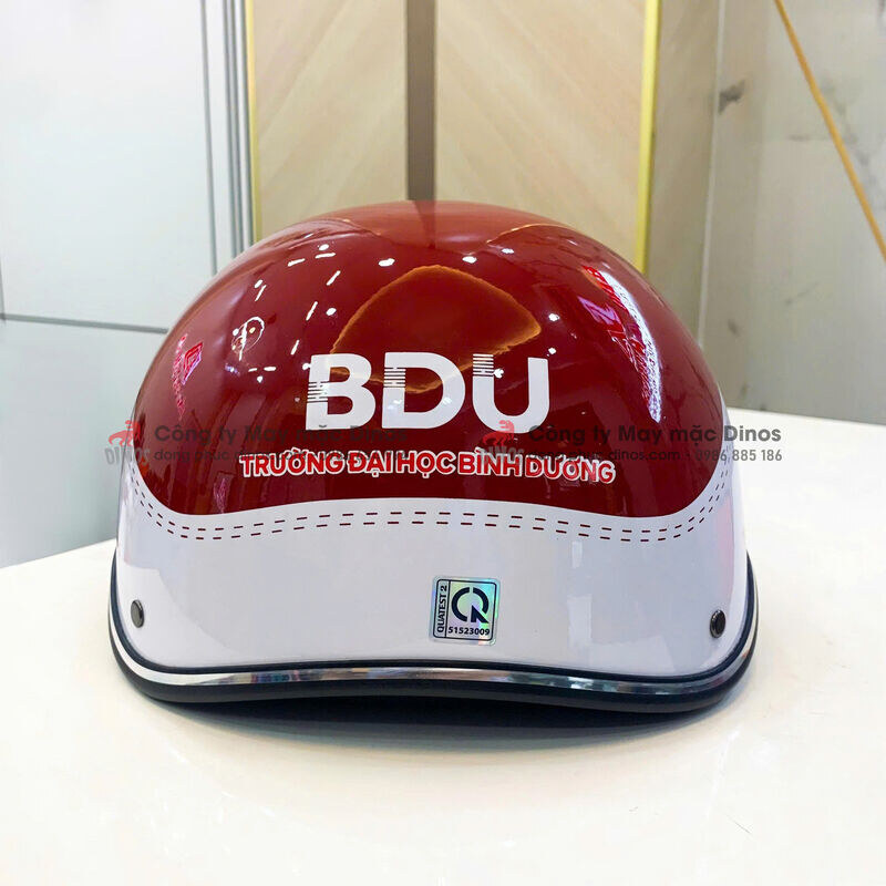 May Mặc Dinos chuyên sản xuất và in mũ bảo hiểm quà tặng chất lượng cao, giá tận xưởng. Đây vừa là món quà thiết thực, vừa là công cụ giúp doanh nghiệp quảng bá hình ảnh thương hiệu. Dưới đây là sản phẩm mà công ty chúng tôi đã gia công theo đơn đặt hàng của Trường ĐH Bình Dương.
